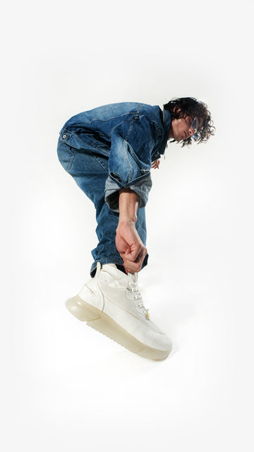 Built slow, built true. Hand-finished silhouette fluid where it feels, angular where it matters. A mid-top silhouette that whispers ease but walks with precision.
