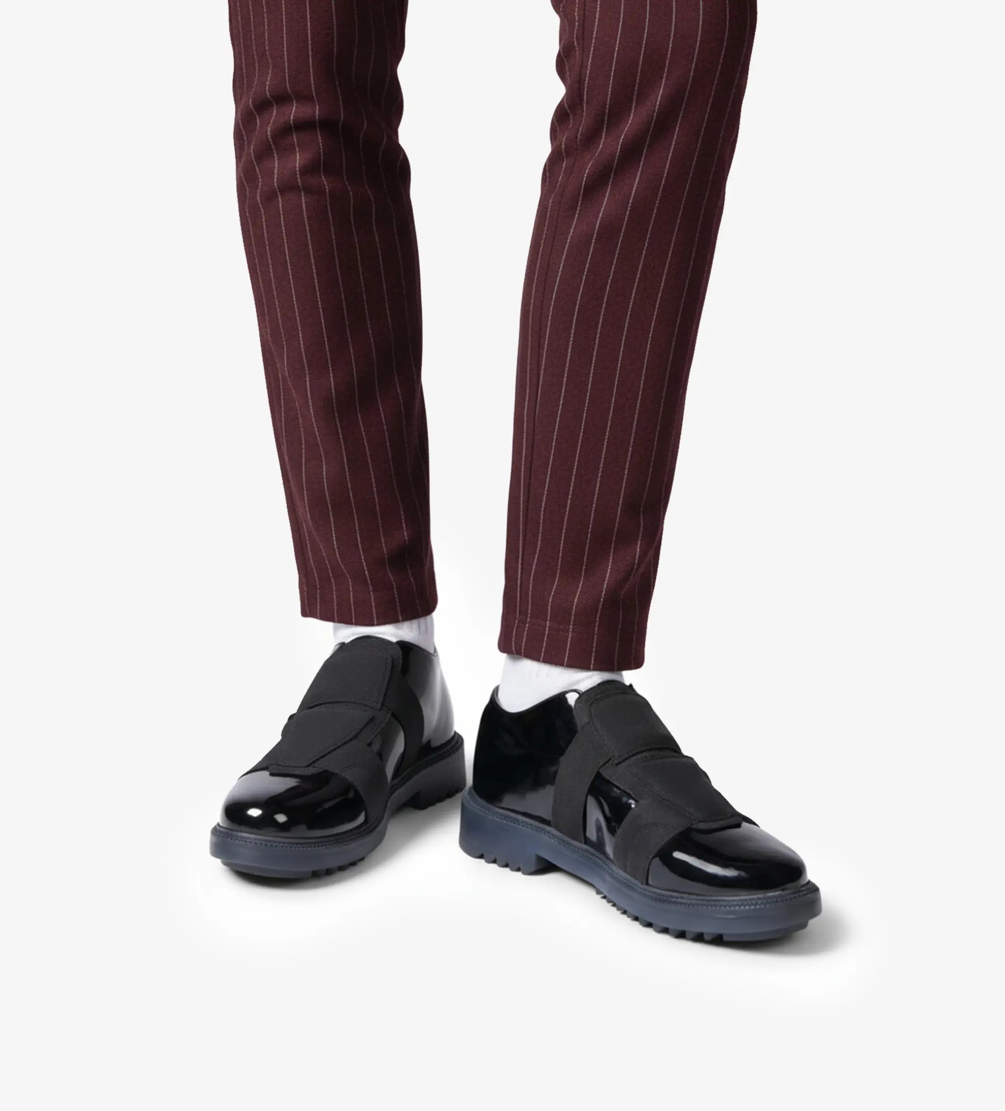 A low-cut silhouette with a curved collar and a bold sole, built to elevate your tux game.